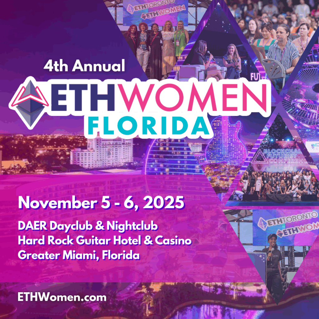 The 4th Annual ETHWomen is a free, female-focused, and inclusive event happening in person on November 5-6, 2025! This event invites women to dive into the world of Web3 through an educational program featuring inspiring speakers, hands-on learning, and valuable networking opportunities. Open to all skill levels, ETHWomen creates a welcoming space for women to explore blockchain technology, cryptocurrency, AI, DeFi, and more.