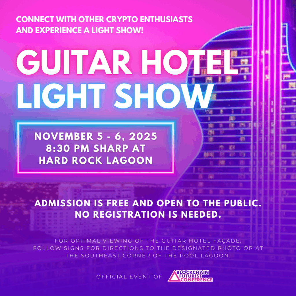 The 8th Annual Blockchain Futurist Conference Week takes place November 5–6, 2025, at the stunning DAER Dayclub and Nightclub inside the Hard Rock Guitar Hotel & Casino in Hollywood, Florida. Touted as the largest Web3 event in the U.S. this fall, the conference brings together industry leaders to explore the future of Web3, crypto, AI, RWAs, DeFi, and beyond.